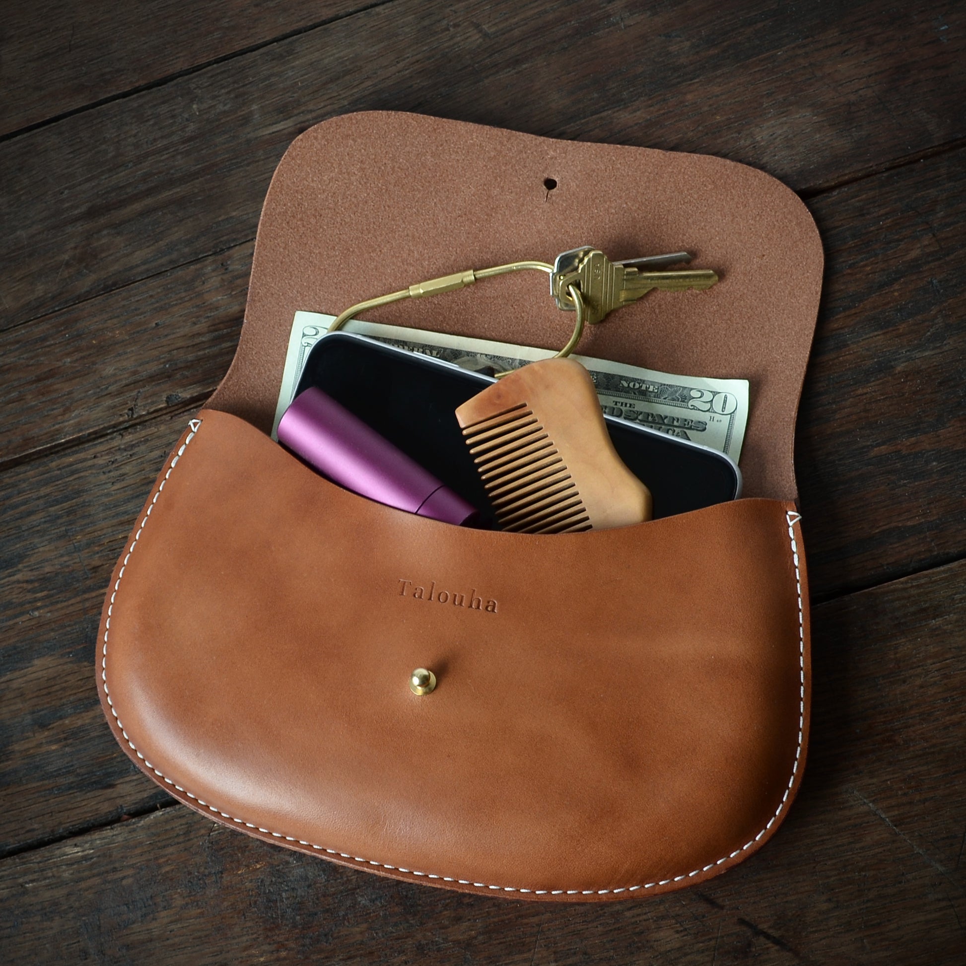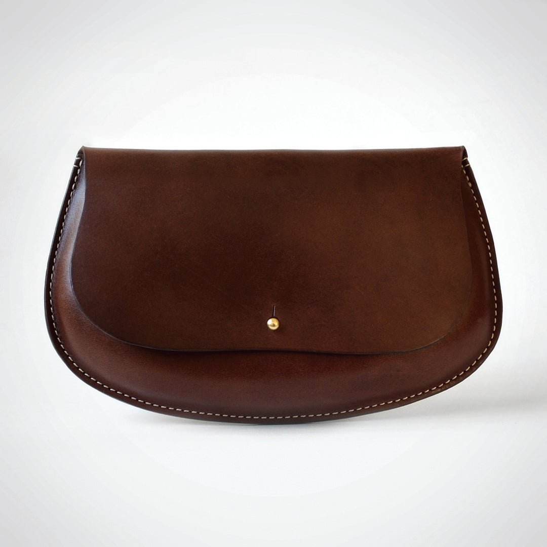• Molded leather pouch with exterior seam construction